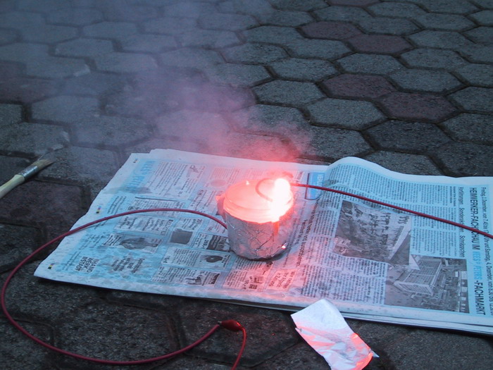 Trotz der geringen Spannung von 2kV lässt sich mit so einem Trafo schon ein Lichtbogen bis 10cm bilden.