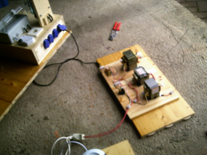 Hochspannung von 2000V und mit bis zu 700mA. Die Trafos sind mit etwa